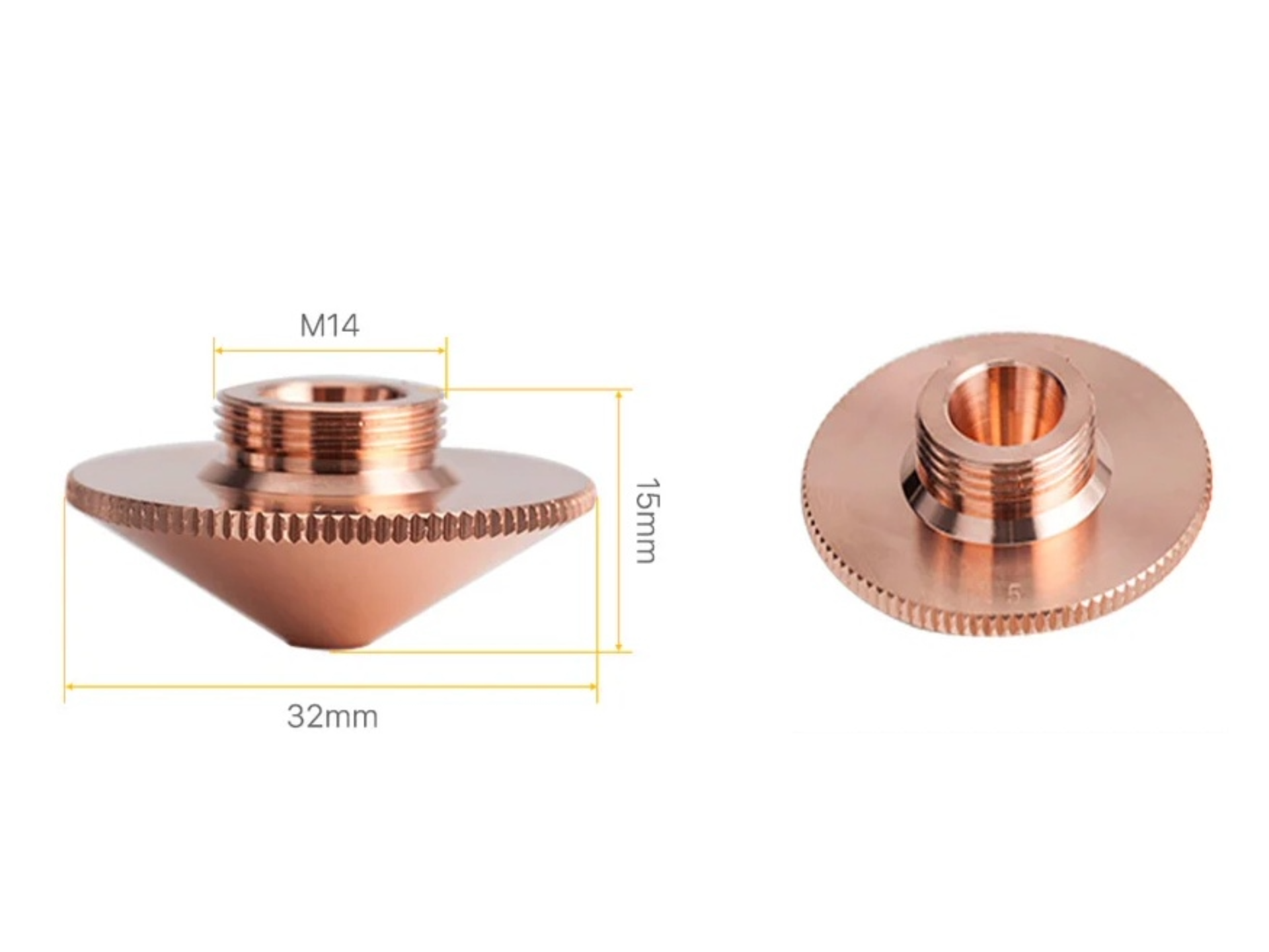 Dizna je pogodna za upotrebu s laserskim glavama Raytools, Precitec, WSX i drugim sustavima s promjerom od 32 mm i navojem M14. Standardna visina je 15 mm. Dostupne su različite veličine otvora (obično od 0,8 do 6,0 mm), što omogućuje prilagodbu prema debljini i vrsti materijala. Pogodan je za rezanje nehrđajućeg čelika, ugljičnog čelika, aluminija i bakra.
