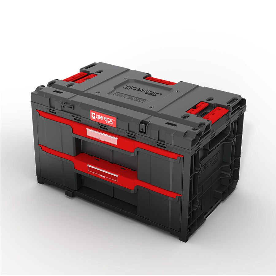 Qbrick System ONE Drawer 2 Toolbox je iznimno prostrana modularna kutija opremljena s dva ladica na metalnim vodilicamakoje osiguravaju glatko otvaranje. Pristup sadržaju omogućuje praktično gumbom koji otvara svaku ladicu zasebno. Obje ladice su jednake visine i opremljene podesivim pregradama od ABS-a – ukupno 3 duge i 8 kratkih, što omogućuje do 12 odvojenih i podesivih pretinaca.