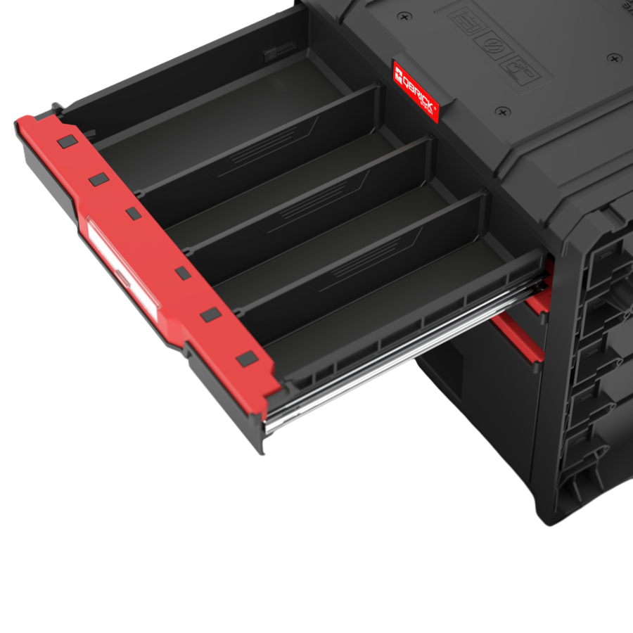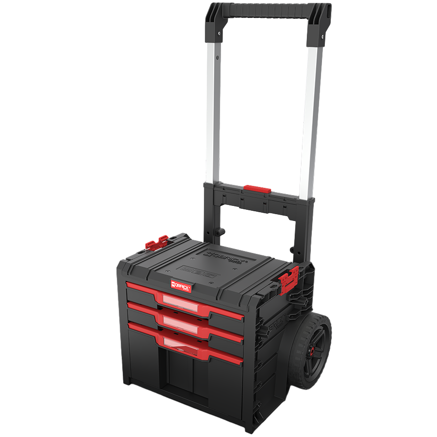 Qbrick System PRO Cart 2.0 Plus Drawer 3 je mobilni spremnik s izvlačnim ladicama, velikim gumama, teleskopskom ručkom i vodootpornom i prašinom otpornom konstrukcijom.