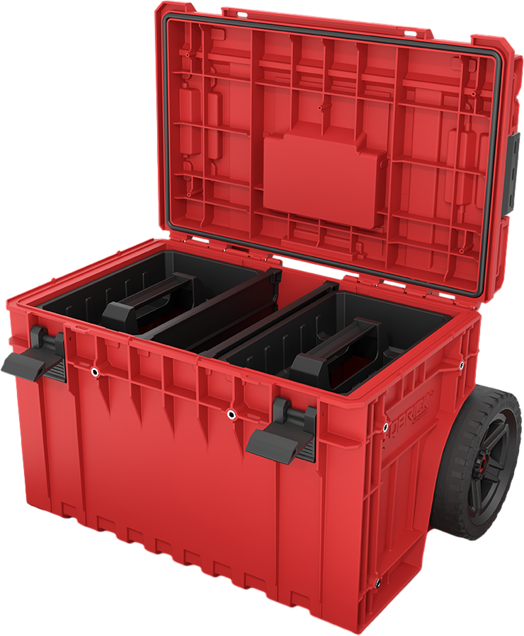 QS ONE Cart RED Ultra HD je mobilni zaboj za orodje z veliko kapaciteto, opremljen z velikimi kolesi na kovinski osi. Teleskopski ročaj iz eloksiranega aluminija omogoča udobno premikanje tudi pri polni obremenitvi. Za boljšo organizacijo notranjosti so priloženi dva pladnja in dva razdelka.