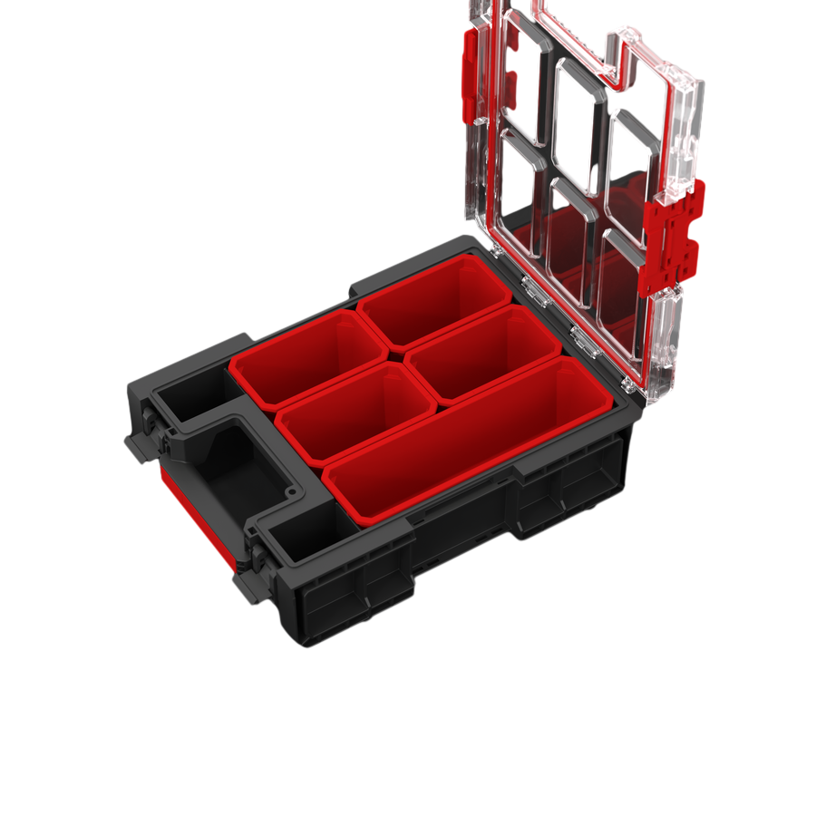 Qbrick System ONE Organizer M Plus 2.0 ponuja modularno shranjevanje z enostavnim dostopom, 5 odstranljivimi posodicami, robustnim tesnjenjem in izboljšano zaščito pred vodo ter prahom.