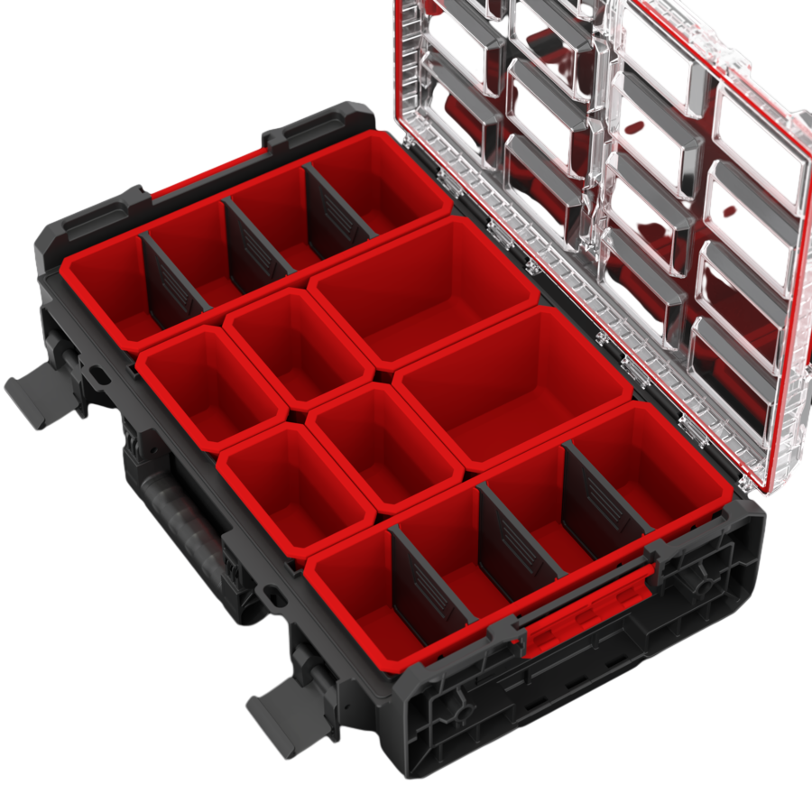 Qbrick System ONE Organizer XL 2.0 je drugi največji model (takoj za 2XL) v družini modularnih organizatorjev, ki jih je mogoče med seboj kombinirati ter povezovati z vsemi kovčki iz linije ONE. XL organizator je opremljen z dvema dolgima posodicama (vsaka daljša od 30 cm), dvema srednjima in štirimi majhnimi posodicami, kar omogoča prilagodljivo shranjevanje različnih pripomočkov in materiala. Različica 2.0 prinaša okrepljeno konstrukcijo in možnost montaže navojnih vložkov M8 za popolno personalizacijo sistema glede na potrebe uporabnika.
